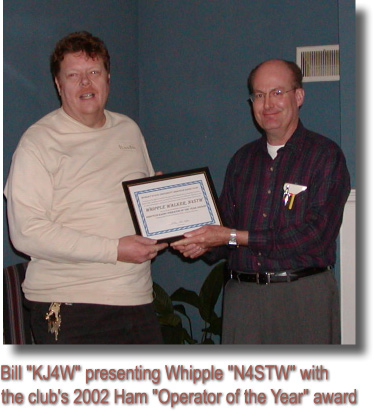 2002, Whipple Walker, N4STW: Recognized for efforts to further the goals of the Murray State University Amateur Radio Club, including service as Field Day Chairman, as a Volunteer Examiner, and on club work projects, and for his achievement of the Amateur Extra Class license.
